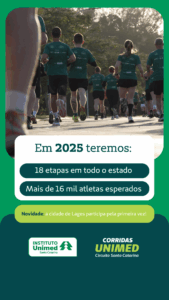 O Corridas Unimed – Circuito Santa Catarina 2025 já começou e, neste ano, traz novidades que reforçam o compromisso da Unimed com a inclusão, a saúde e o bem-estar. Pela primeira vez, o evento conta com o apoio da Lei de Incentivo ao Esporte, por meio do Instituto Unimed SC, ampliando a participação de atletas e levando a corrida também para estudantes de escolas públicas, que recebem ingressos de cortesia em cada etapa.